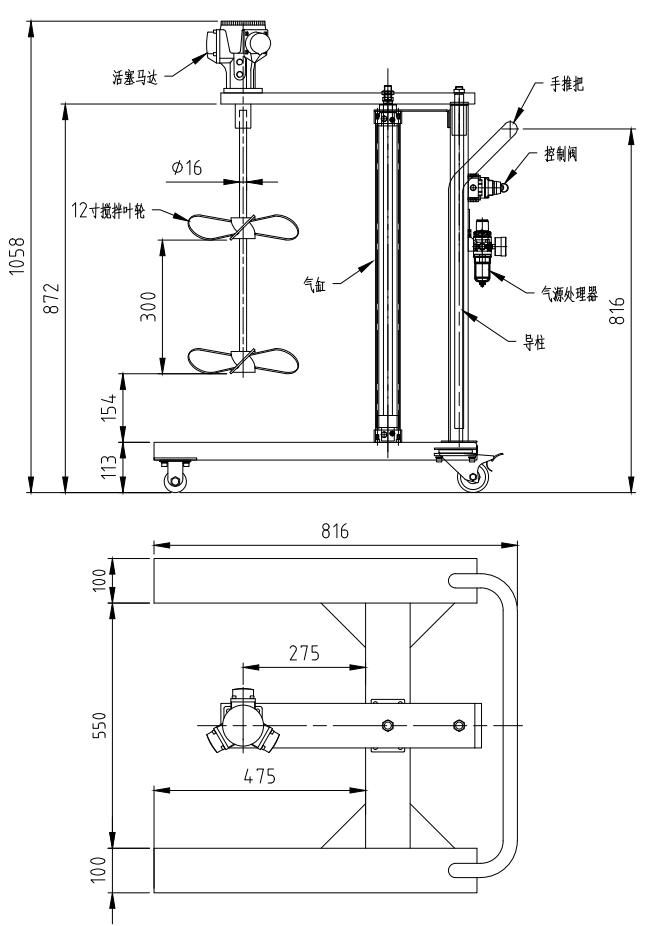 氣動升降高(gāo)度(dù)自由調整、提高攪拌作業效率、降低勞動強度。