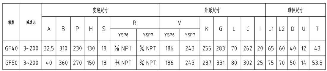 氣動減速馬達 YSGAP6~P7-GF40~50