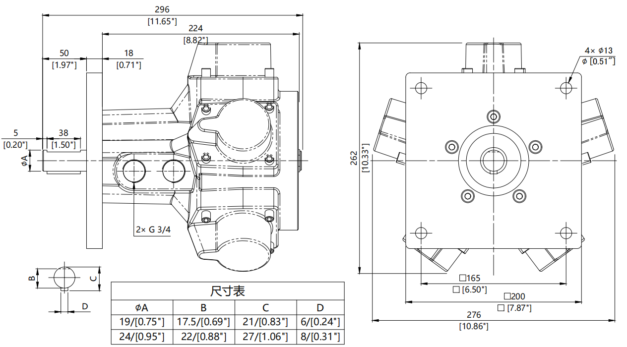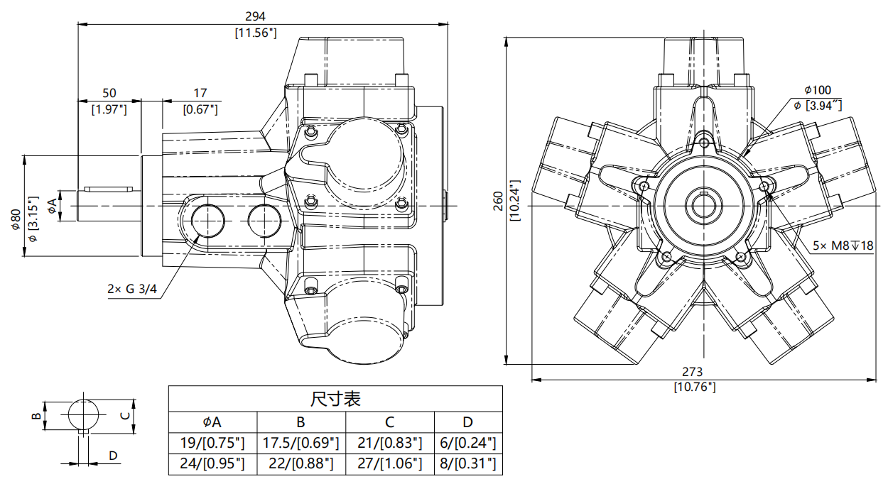 接口尺寸 | 3/4 PT |